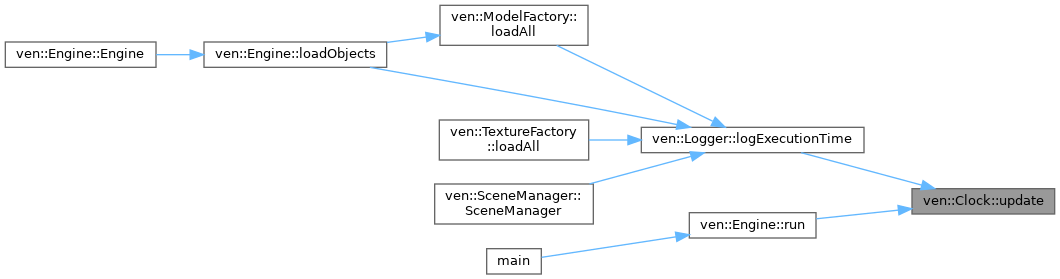 Here is the caller graph for this function:| void ven::Clock::update | ( | ) |